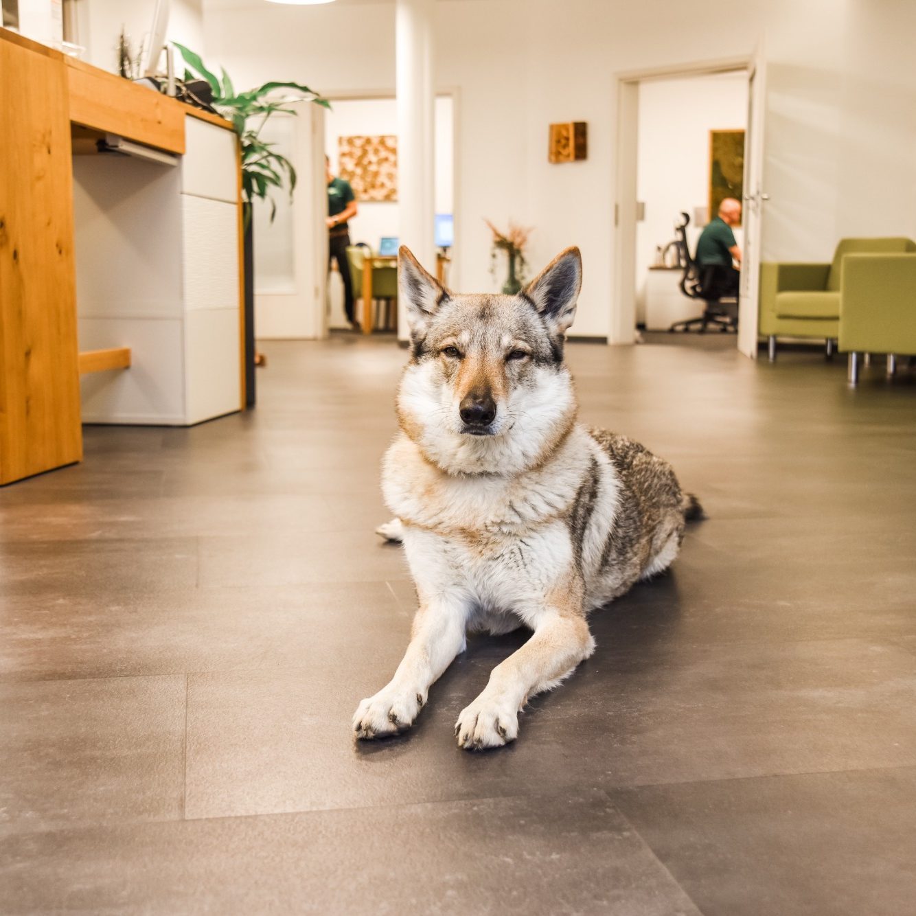 Unsere mittlerweile fast 13-jährige Wolfshundedame sieht auch manchmal in unseren Geschäften nach dem Rechten – treu, ruhig und voller Weisheit. Mit ihrer freundlichen Art begrüßt sie unsere Kundinnen und Kunden und und ist ein echter Hingucker.